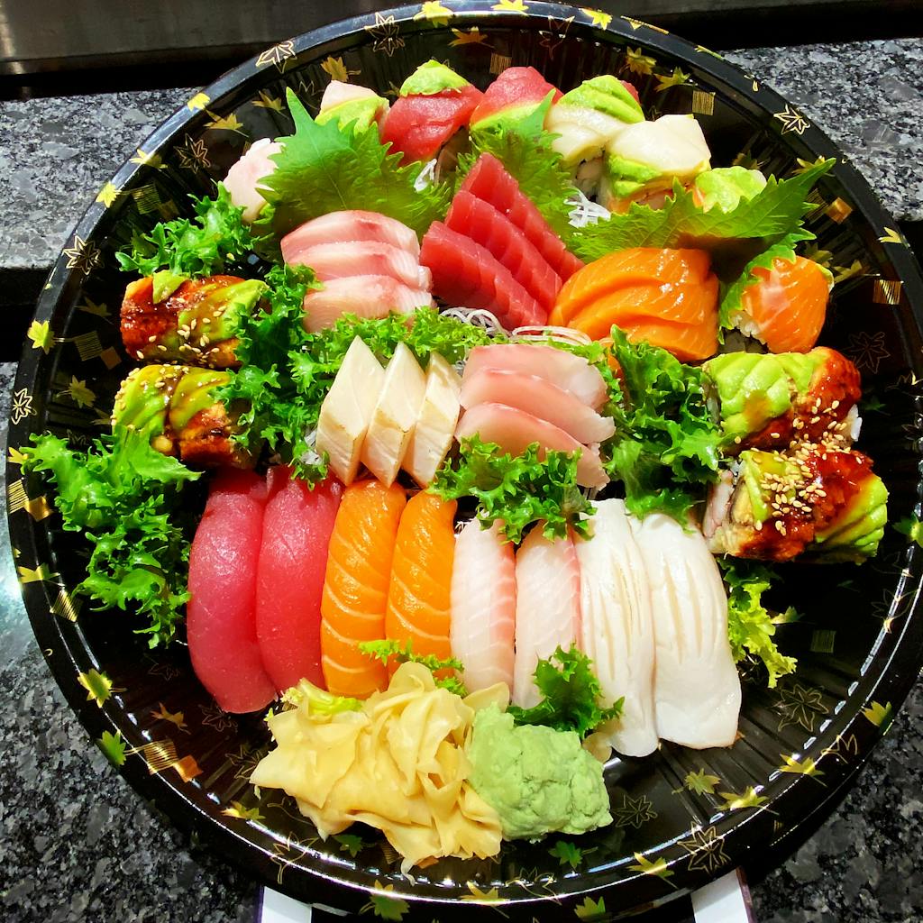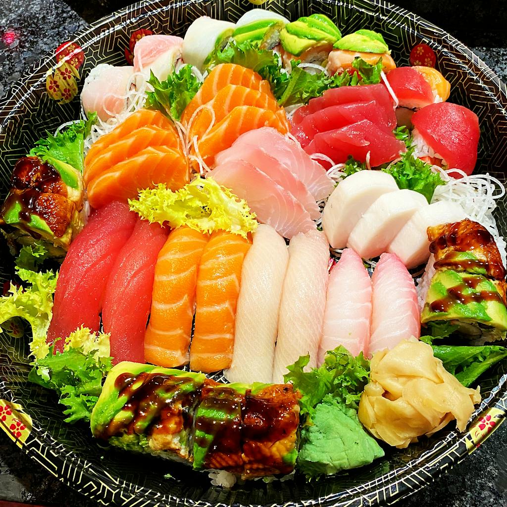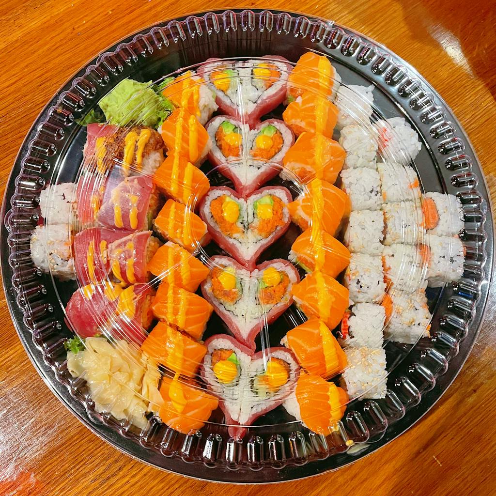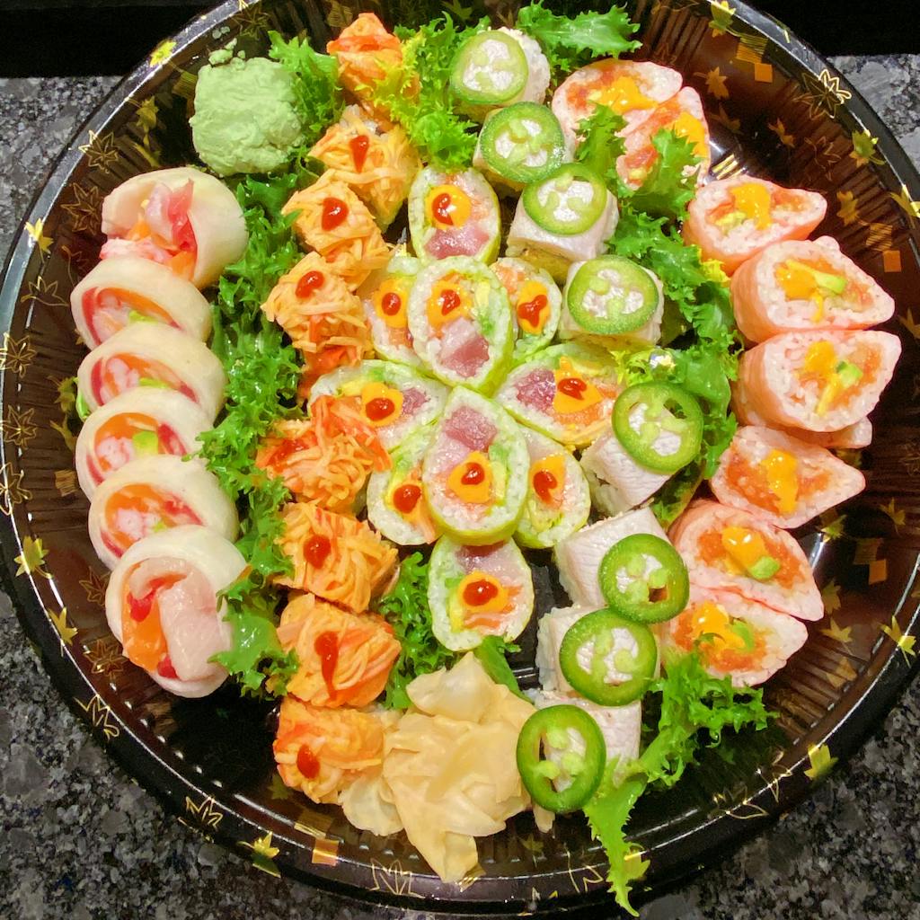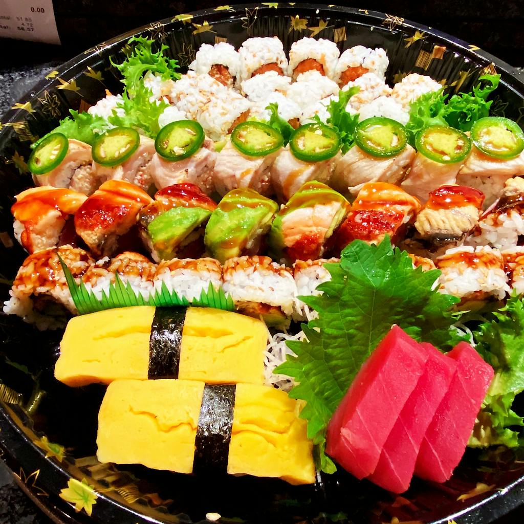 Spicy Tuna Roll, Spicy Crab Roll, Dragon Roll, Tomago Sashimi, Tuna Sashimi, Hamachi Jalapeño Roll